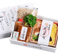 京都の老舗・お取り寄せ、鰻の柳川鍋と蒸し寿司(各1人前1個ずつ)詳細情報です。